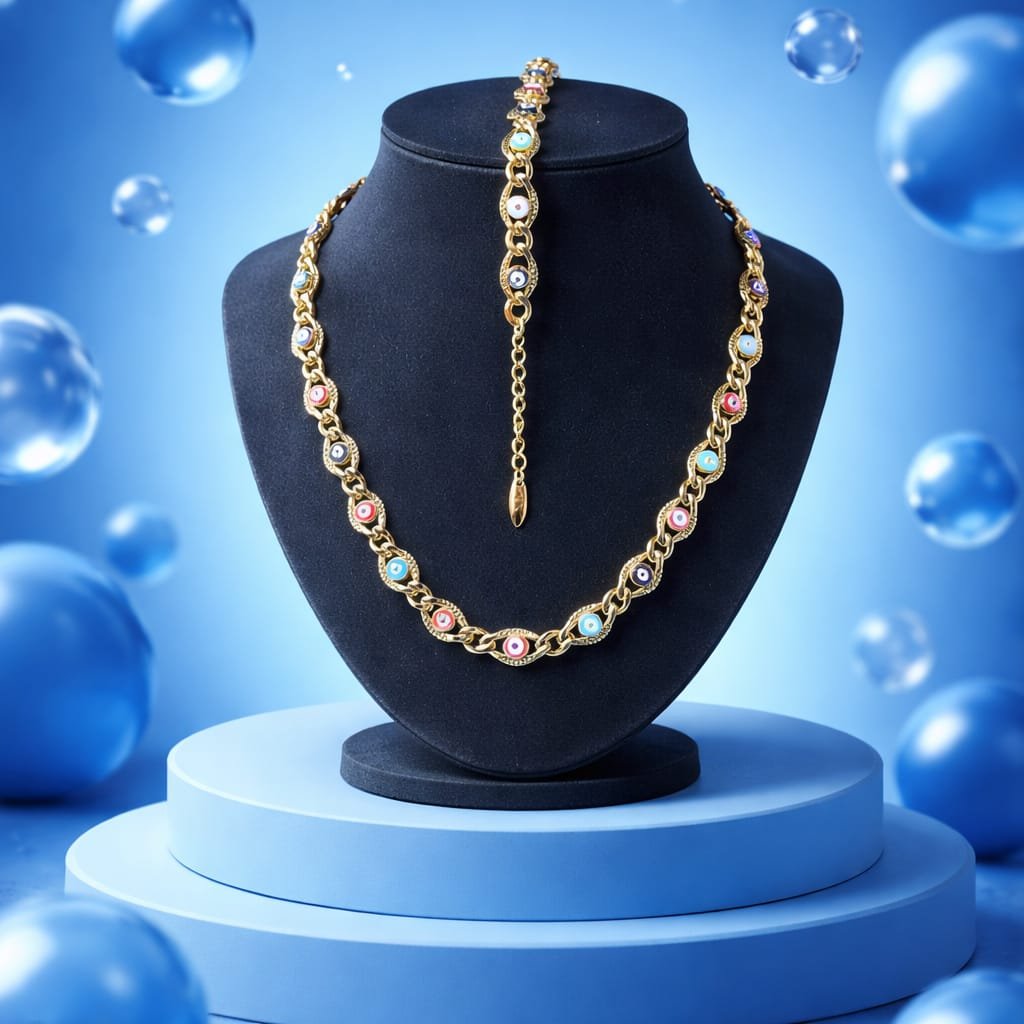 Set Collar y Pulser Ojos Rojos y Azules pertenece a la categoría Oro y subcategoría Set. Es un accesorio pensado para aportar presencia, versatilidad y una presentación atractiva tanto en tienda como en catálogo online. Disponible en talla única.