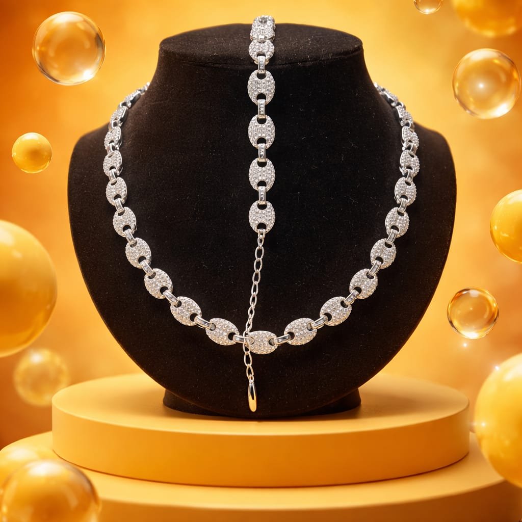 Set Collar y Pulsera Imitacion Gucci Pequeñas Piedras pertenece a la categoría Oro y subcategoría Set. Es un accesorio pensado para aportar presencia, versatilidad y una presentación atractiva tanto en tienda como en catálogo online. Disponible en talla única.